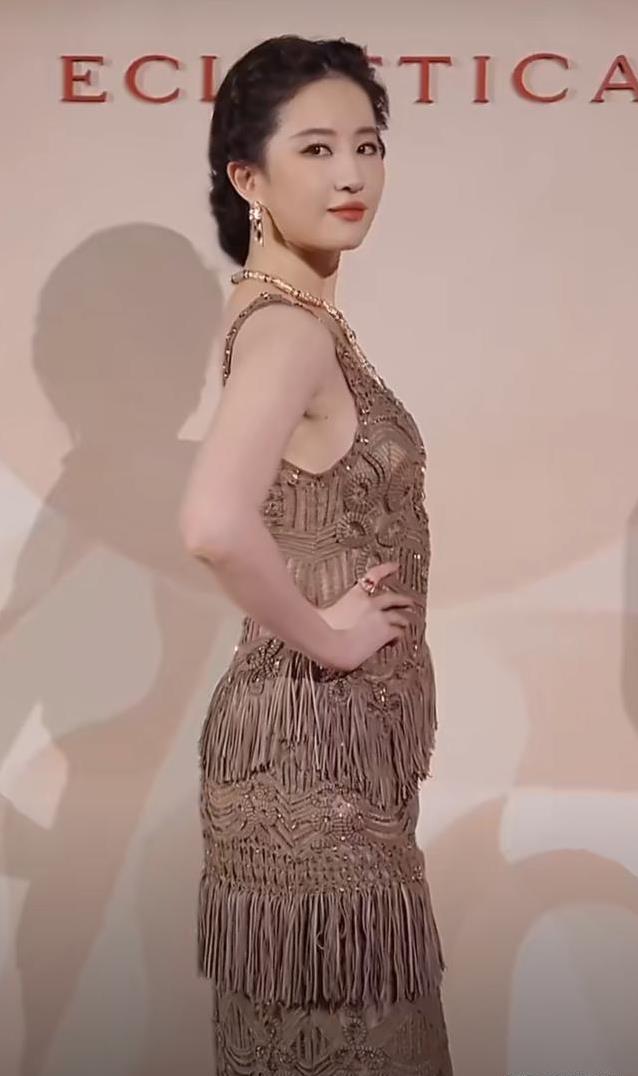 刘亦菲的亮相则成为全场亮点之一。她穿的是埃利·萨博二零二六年春夏高级定制系列的镂空流苏裙装,这已是她连续第四季在国内率先展示该品牌的高定作品。裙子颜色偏暗,却因为她匀称的身材而格外引人注意。白皙的皮肤在人群中像被自然的光线聚集,一眼就能被注意到。